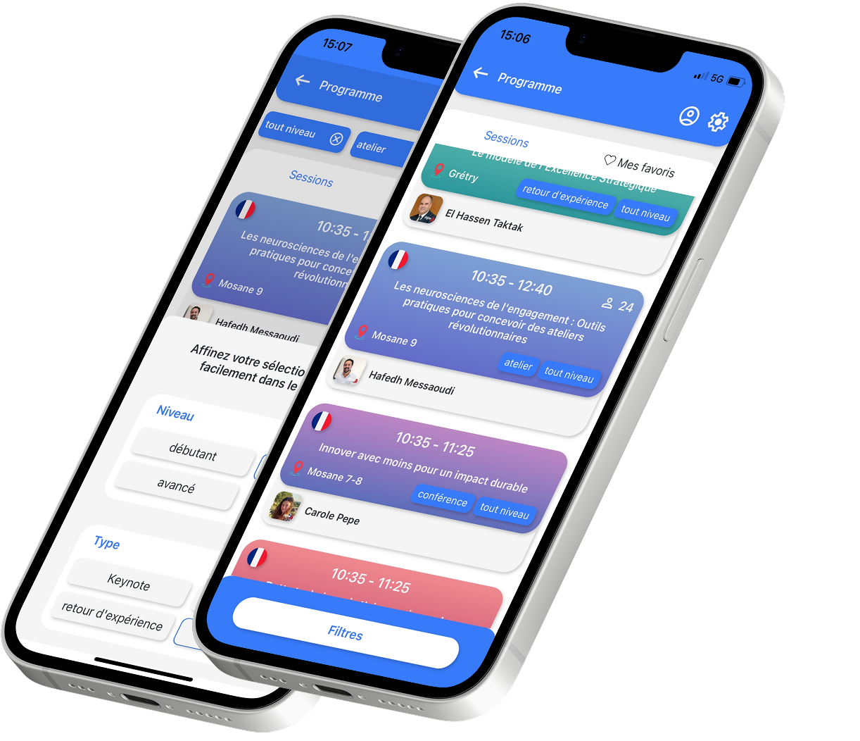 Préparez votre Journée Agile en toute simplicité. L’app vous permet de consulter le programme complet, de filtrer les sessions par thème, par niveau ou par intervenant, et de créer votre sélection personnalisée en ajoutant vos favoris. Vous gardez ainsi une vue claire de votre planning et retrouvez facilement les conférences qui vous intéressent tout au long de la journée !